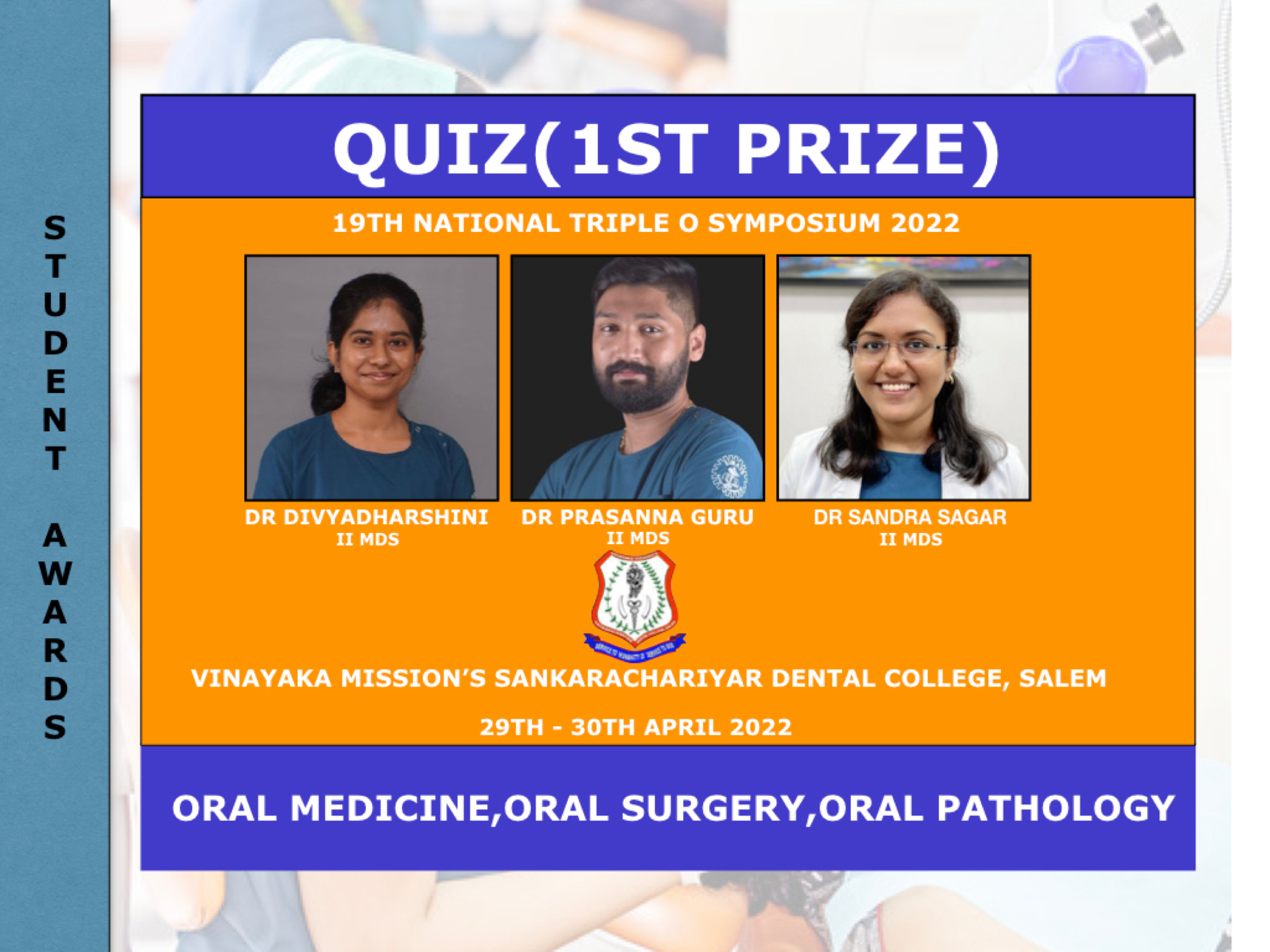 Dr. M.R Muthusekhar -"Life time achievement award” by the Association of Oral & Maxillofacial Surgeons - Tamilnadu and Puducherry branch